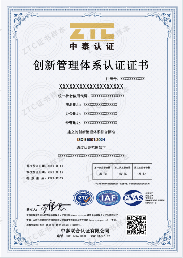 认证标准:ISO 56002:2019《创新管理–创新管理体系指南》和ISO 56001:2024《创新管理体系 要求》