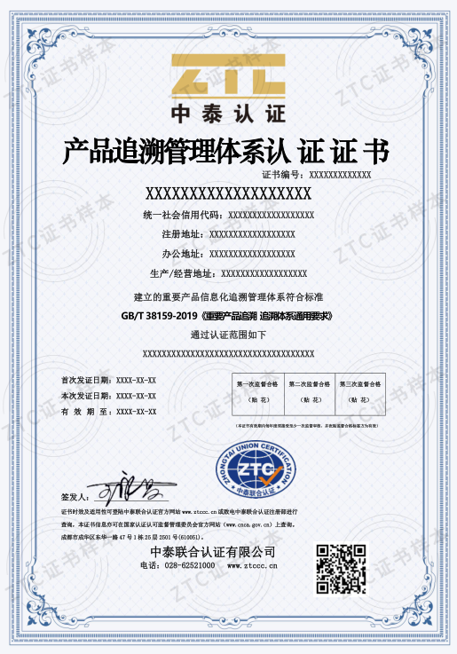 认证标准:GB/T 38159-2019《重要产品追溯 追溯体系通用要求》