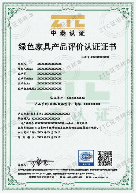 ZTC-B005 C/0 《绿色产品评价认证实施规则-家具》