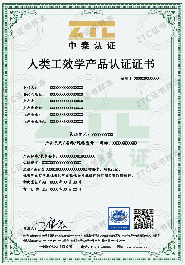 • 增强市场竞争力:认证证书是企业产品符合人类工效学标准的权威证明,能够显著提升企业在市场中的竞争力。